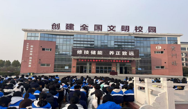 2025年10月15日上午,开封市应用科技职业学校联合开封市强制隔离戒毒所开展了丰富多彩的毒品预防教育第一课。