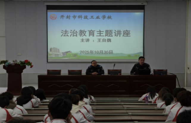 2025年10月23日下午,开封市文化旅游学校特邀开封市城乡一体化示范区公安分局民警任警官到校开展禁毒专题讲座。