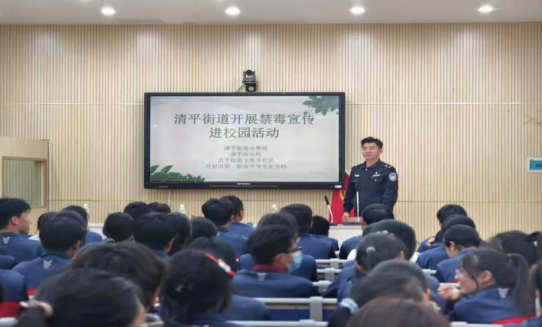 2025年10月16日上午,清平街道综治办、派出所、文殊寺社区工作人员走进开封市第一职业中专开展“开学第一课”禁毒宣讲进校园活动。